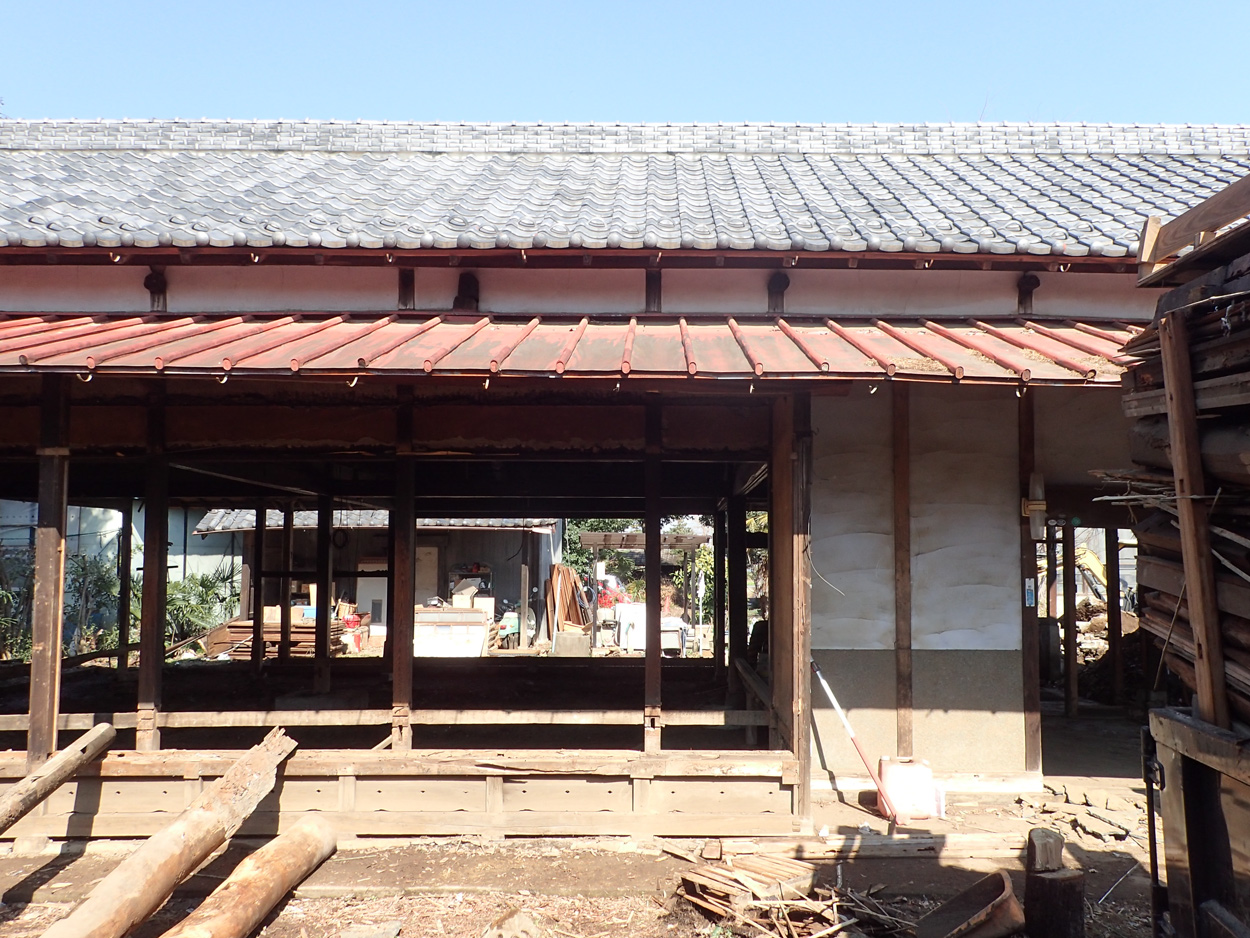 埼玉県狭山市で、築100年以上の古民家のリノベーション工事中です。数年間、空き家になっていた母家を息子さん家族が暮らせるように改修していきます。現在、解体工事の最中です。床、天井、サッシ、建具など今回のリノベーションで使わない部分を解体していきました。