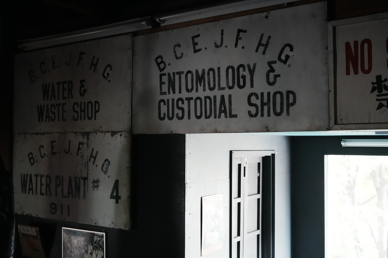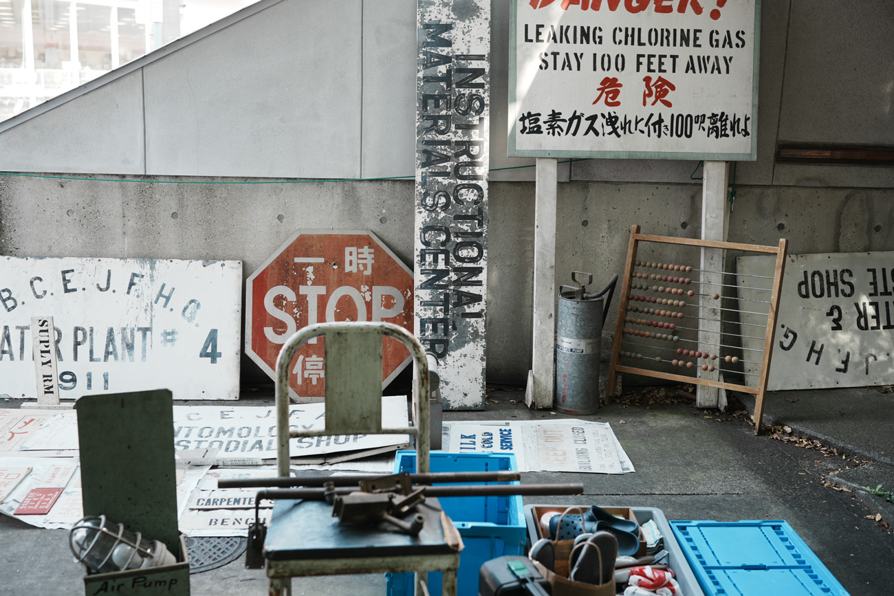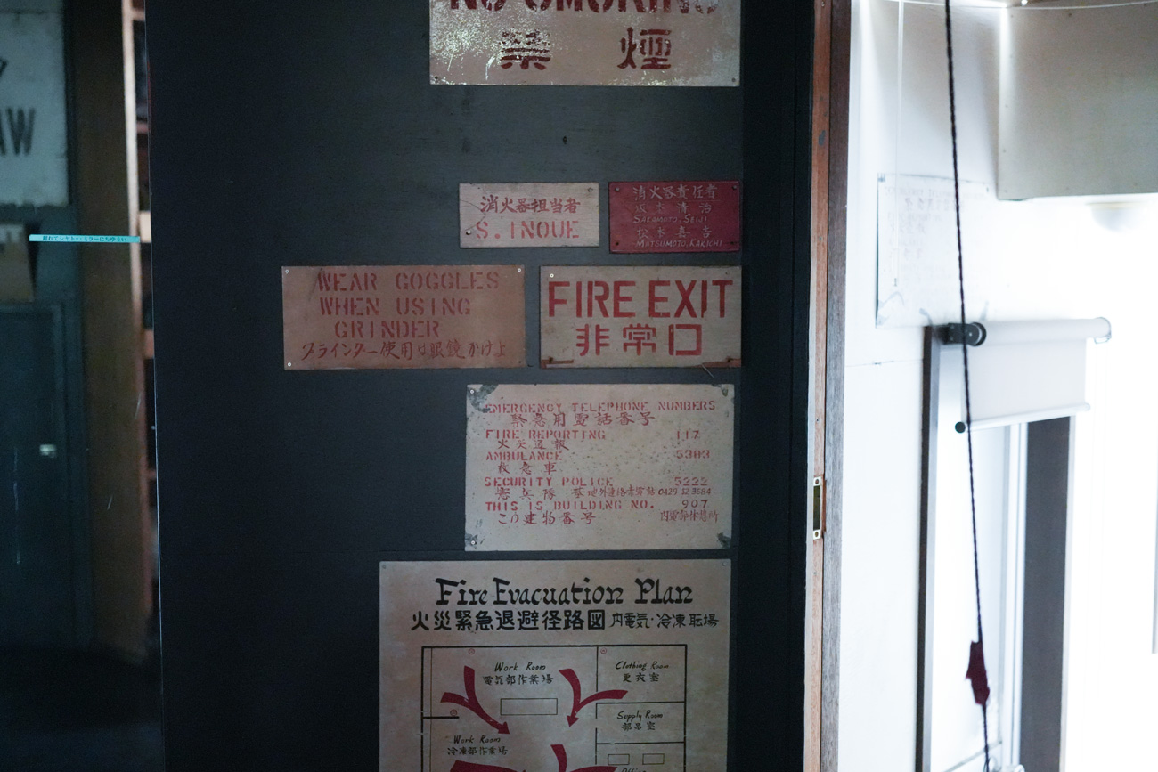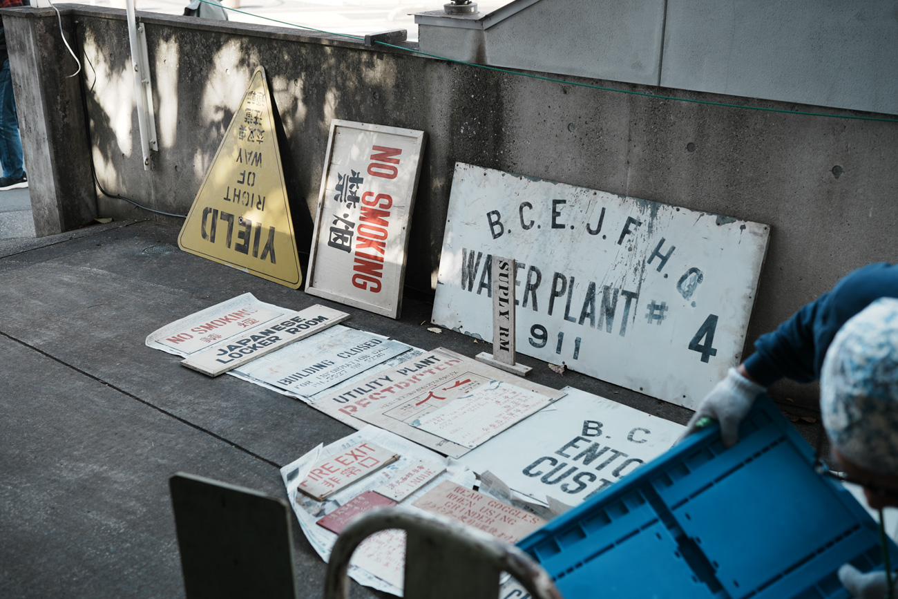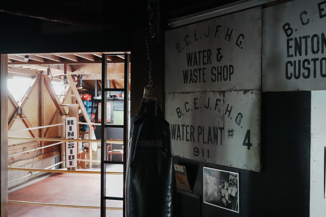 独楽蔵のアトリエには、その頃の名残として、2階のボクシングジムの壁に当時の看板やサインを飾っていました。年月を経ても色あせない文字や、手作りのペイントには、基地の街としての記憶が確かに息づいていたように思います。