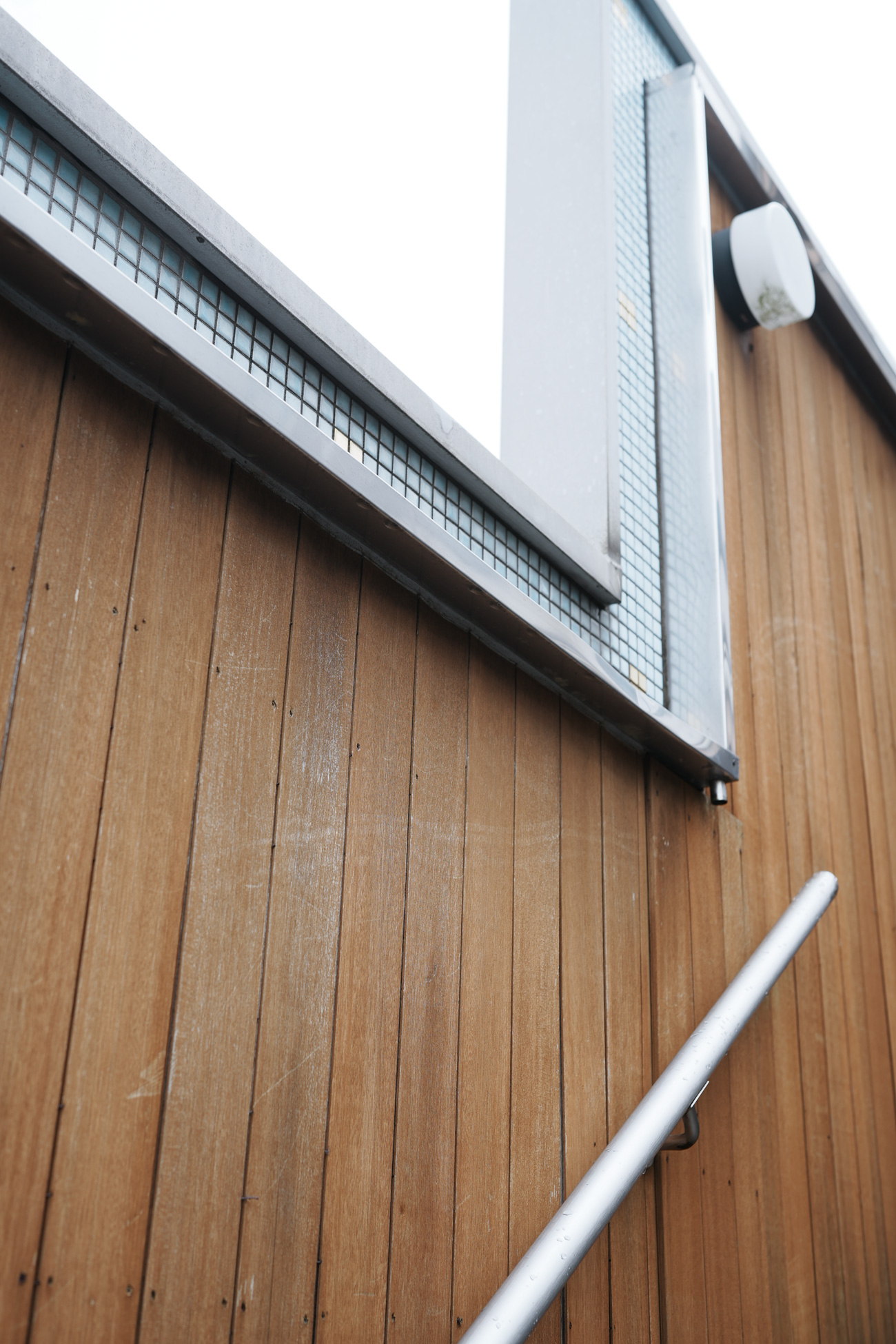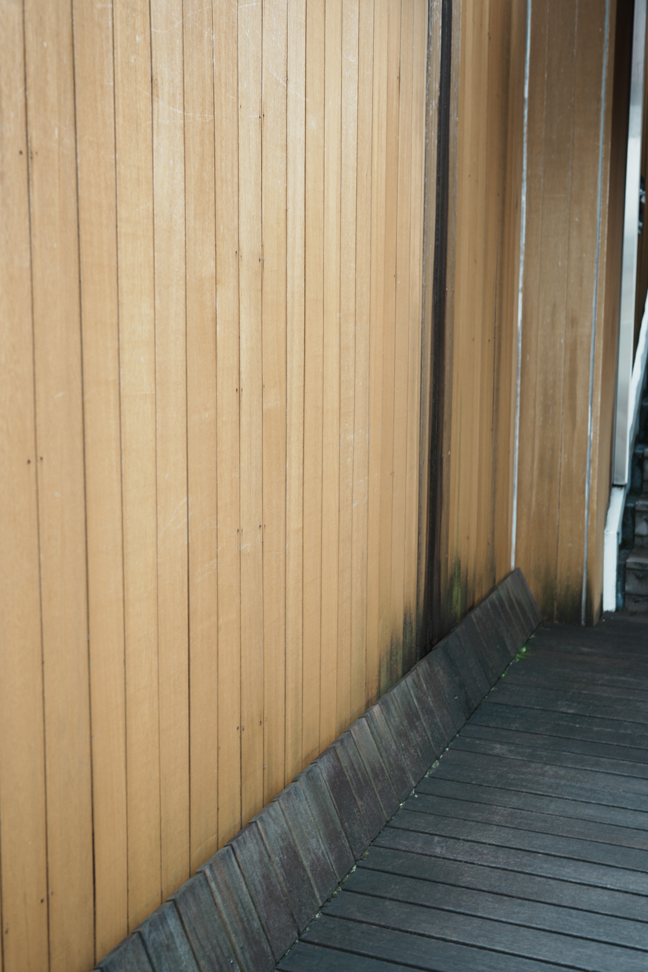 KOMATSUYA STEPSの外壁:ラワン材の縦羽目板