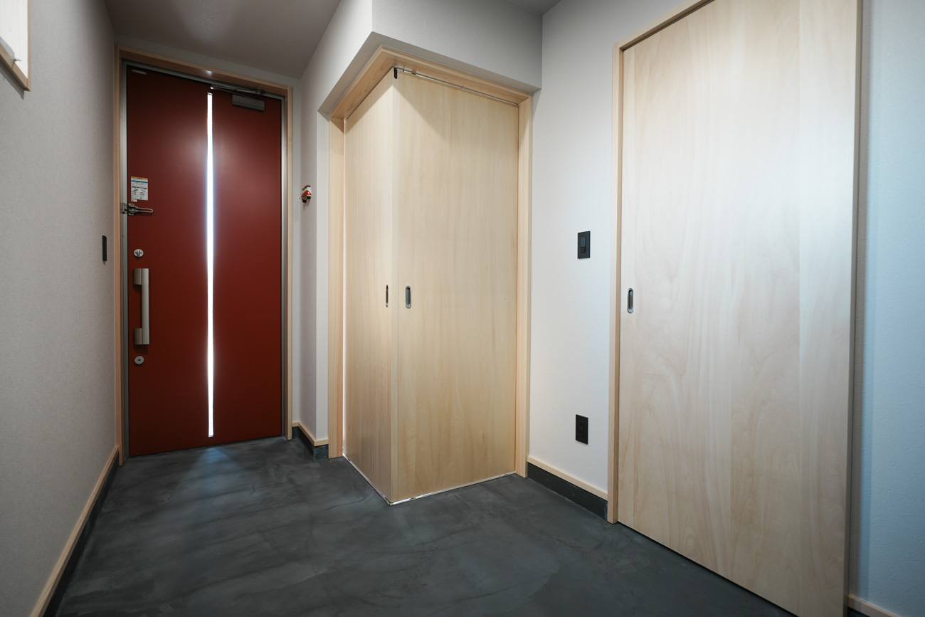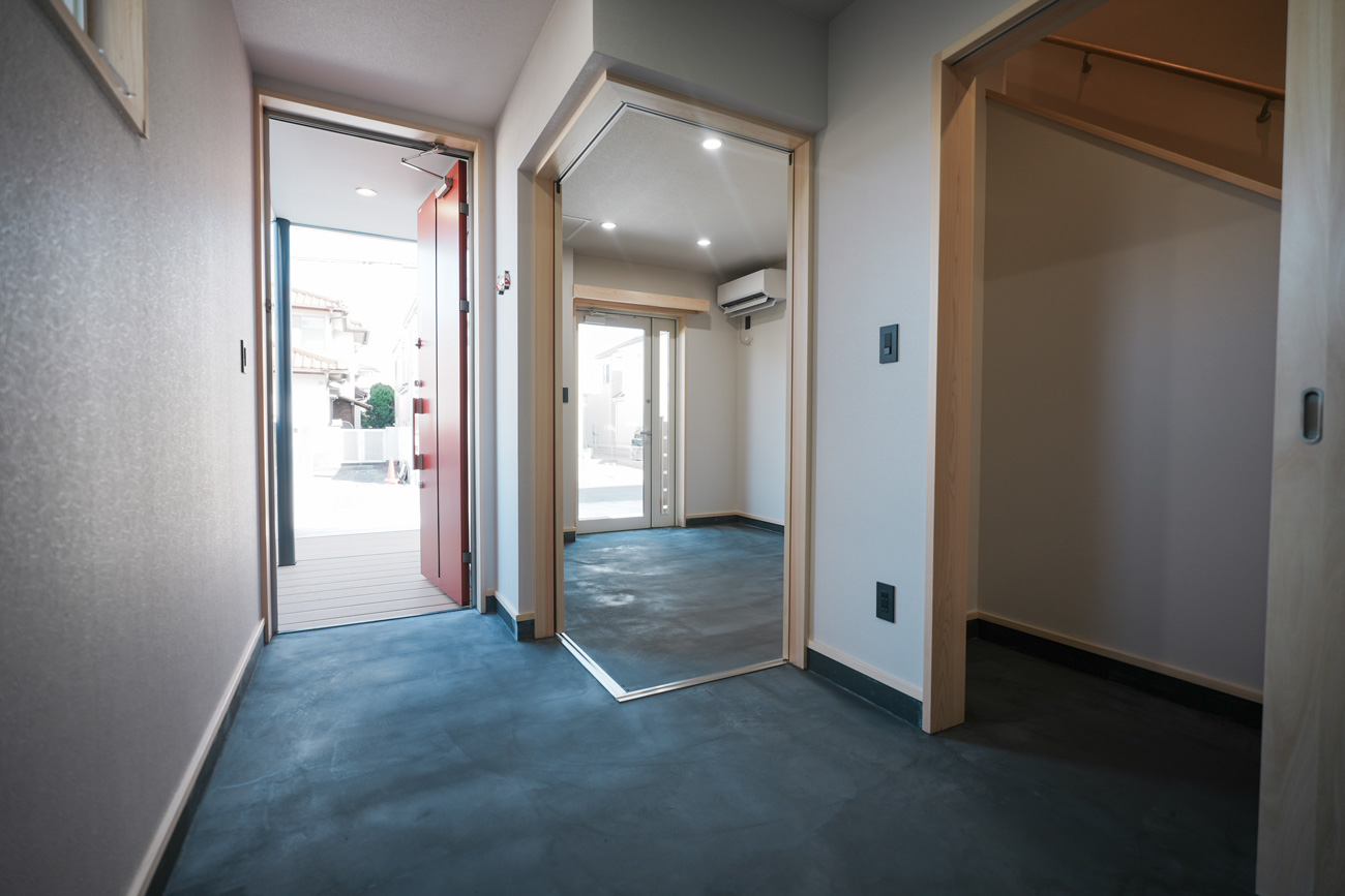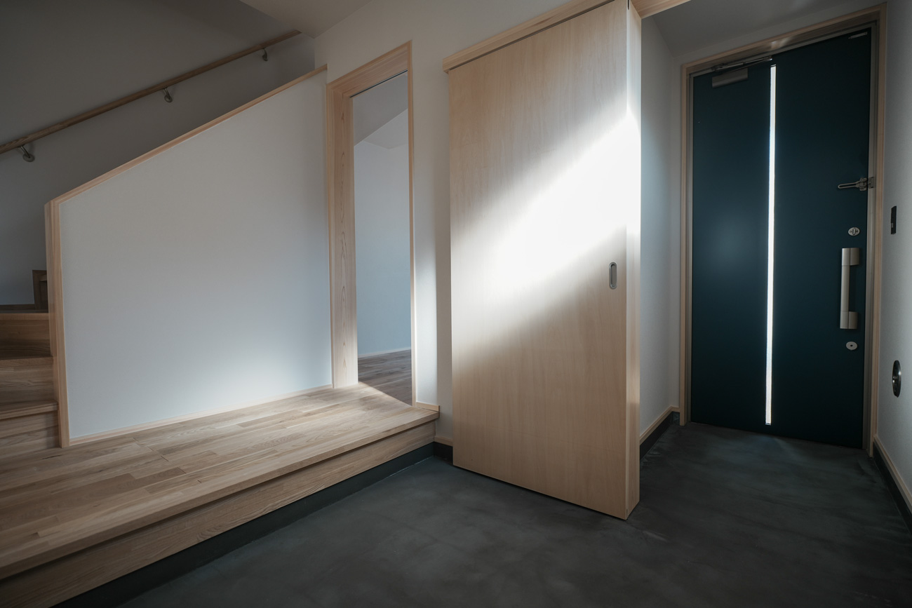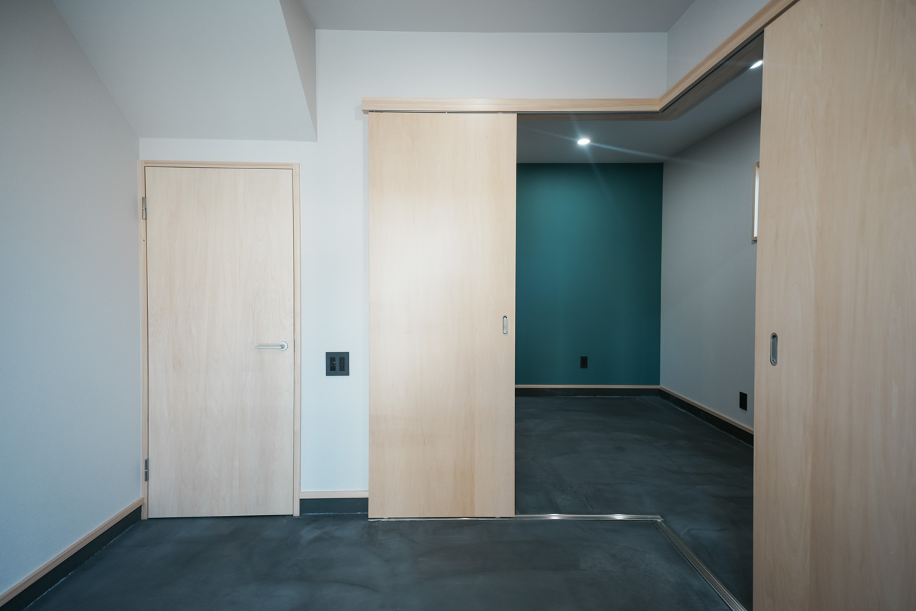 【引き戸を開けると、玄関土間&アトリエスペースを一体化】