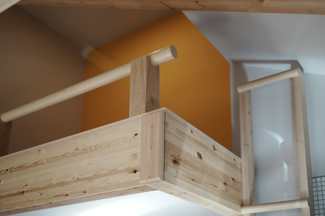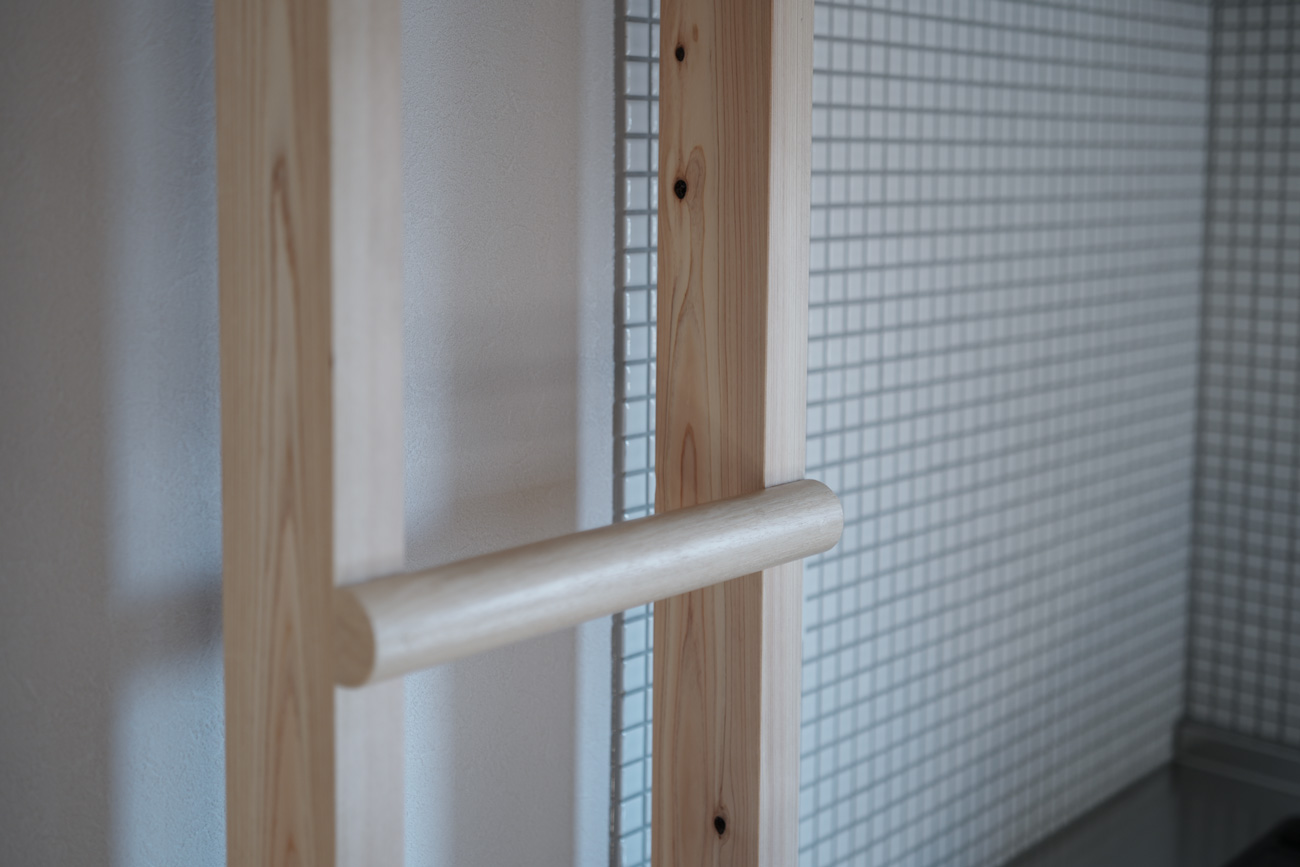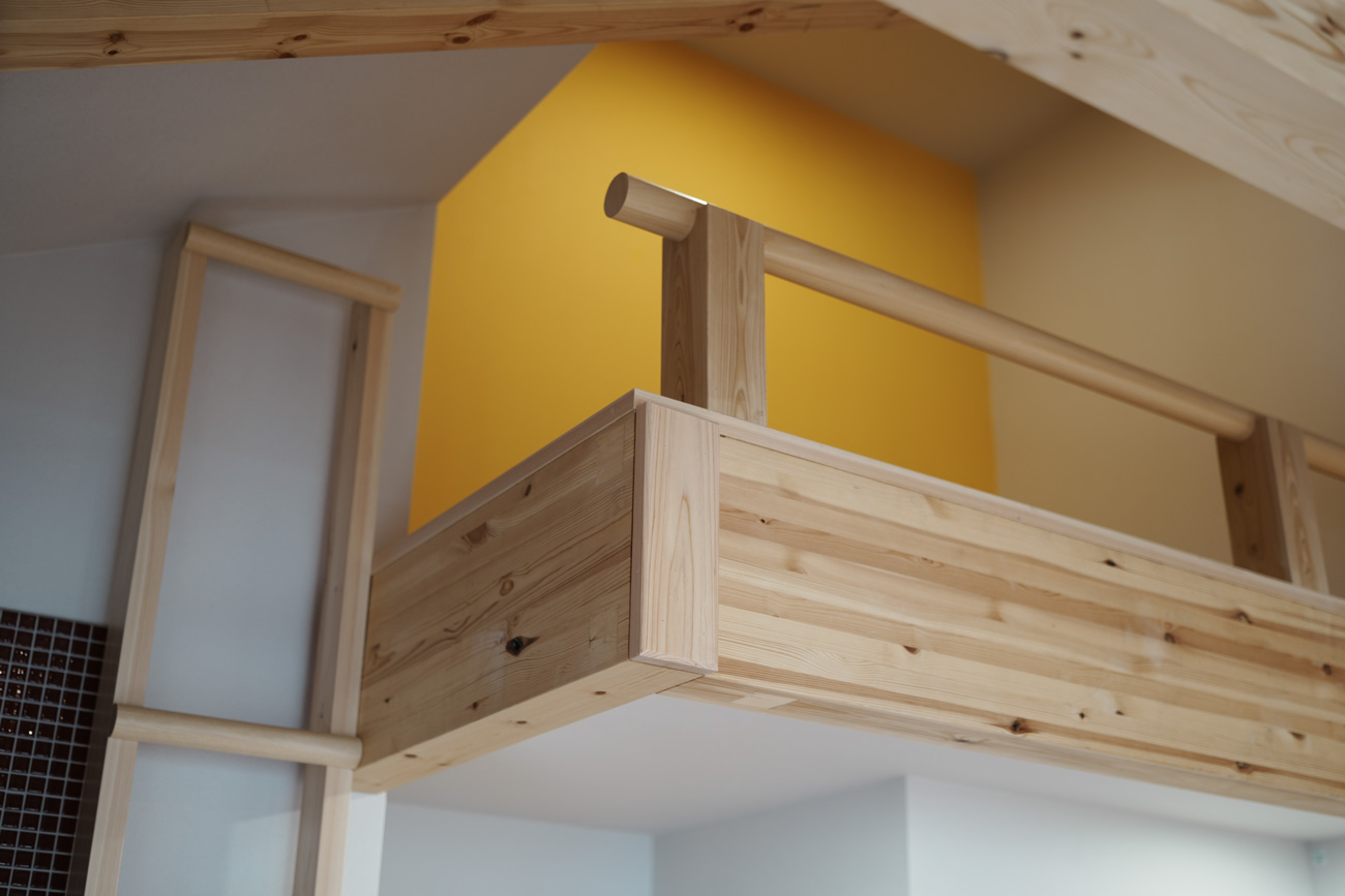 【モザイクタイルのキッチンやロフトに登るための梯子】